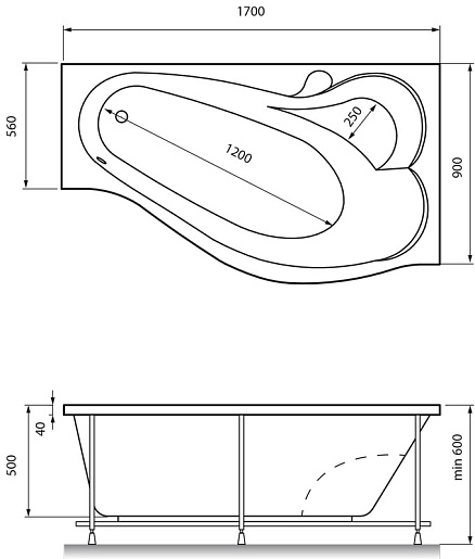 - асимметричная форма (установка в угол, нишу)
