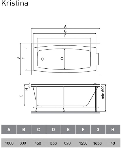Relisan Акриловая ванна Kristina 180x80