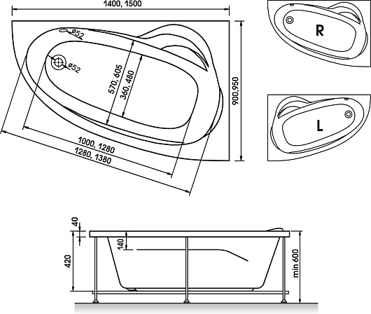 Relisan Акриловая ванна Zoya L 140x90