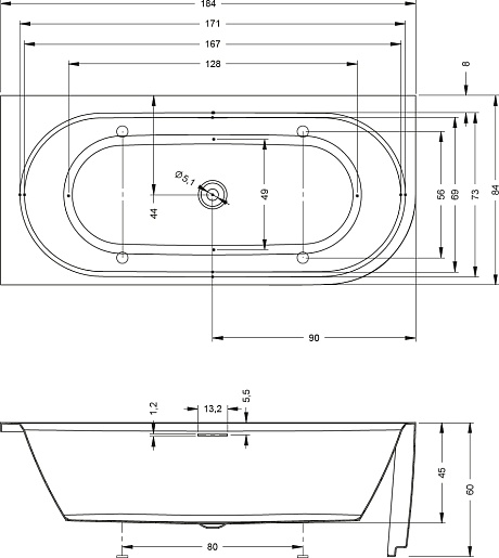 Комплектация: ванна, сифон, слив-перелив, ножки.