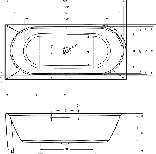 Комплектация: ванна, сифон, слив-перелив, ножки.