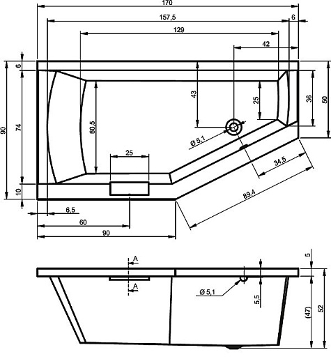Riho Акриловая ванна GETA 170 R
