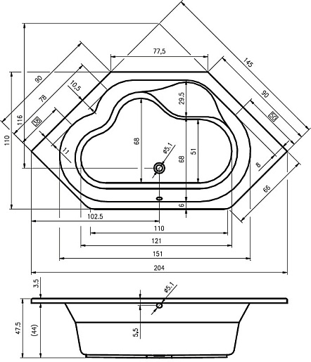 Комплектация: ванна, сифон, слив-перелив, ножки.