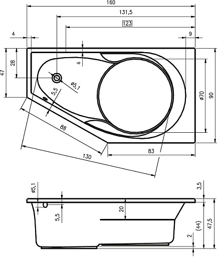 Комплектация: ванна, сифон, слив-перелив, ножки.