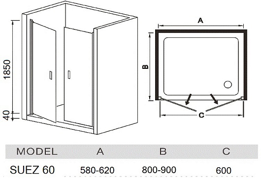 Душевая дверь в нишу River Suez 60 МТ - арт. 10000006432.