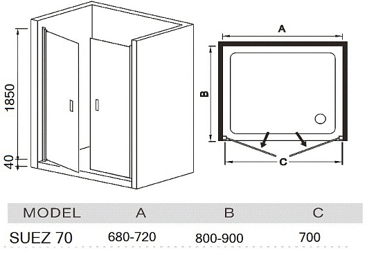 River Душевая дверь в нишу Suez 70 МТ