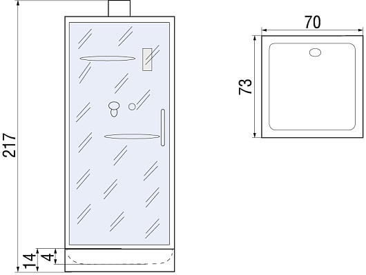 - ДхШхВ: 70х73х217 см