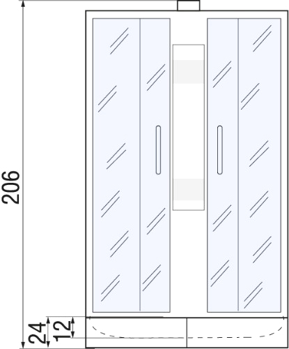 Ручной душ имеет специальный держатель, также можно его разместить у самой крыши для использования в качестве верхнего. Акриловый поддон высотой 24 сантиметра со съёмным экраном можно использовать как небольшую ванночку.