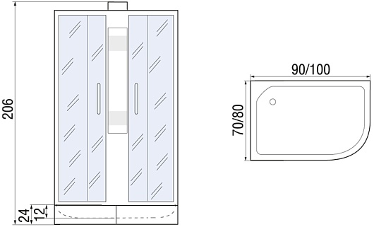 River Душевая кабина Nara Б/К 90/80/24 МТ R
