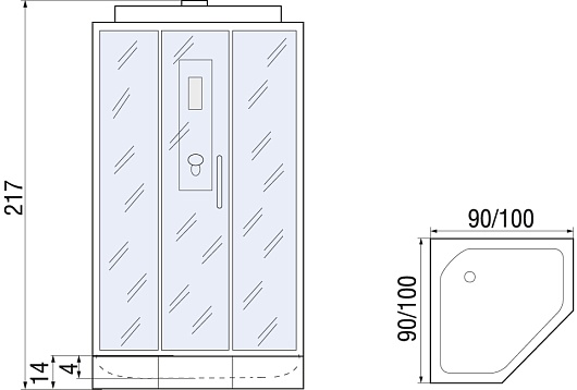 - ДхШхВ: 90х90х217 см