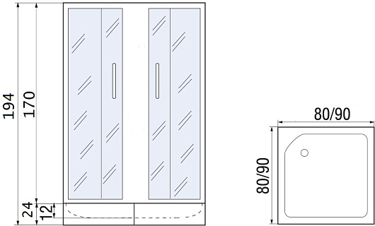 - 2 раздвижные дверцы