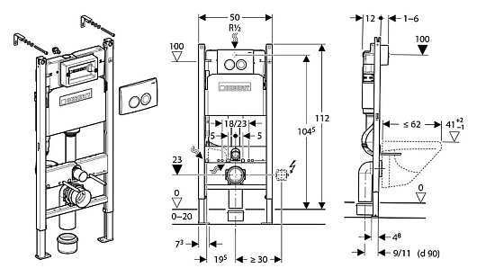Система инсталляции Duofix Delta 458.124.21.1 3 в 1 с кнопкой смыва