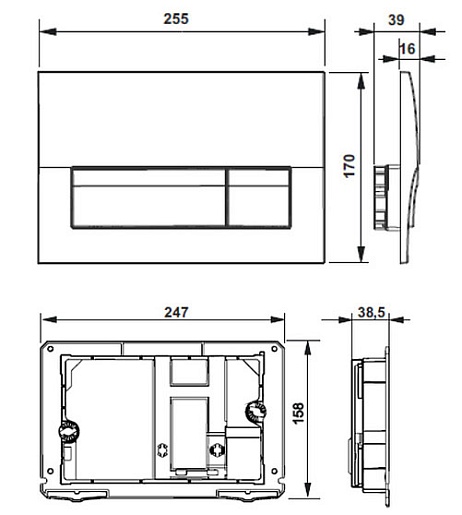 - Кнопка смыва пластик, хром глянец