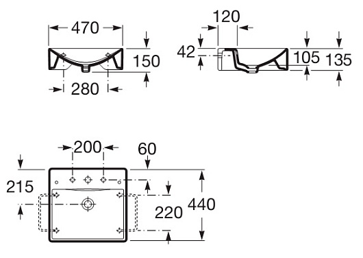 - два намеченных отверстия под смеситель слева и справа