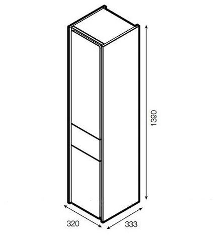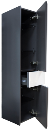 - Высокий шкафчик имеет увеличенную глубину – 33 см (стандартные шкафчики – 26 см), укомплектован полочками из затемнённого стекла