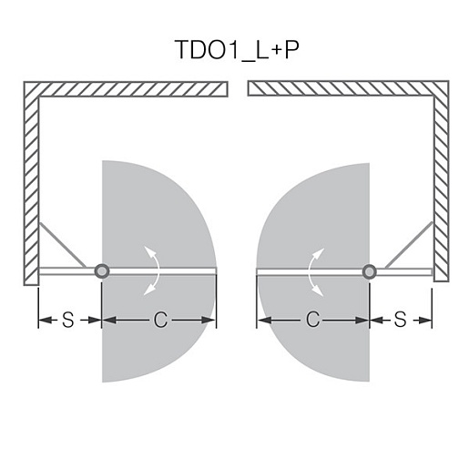 - возможен монтаж душевого уголка из двух дверей TDO1