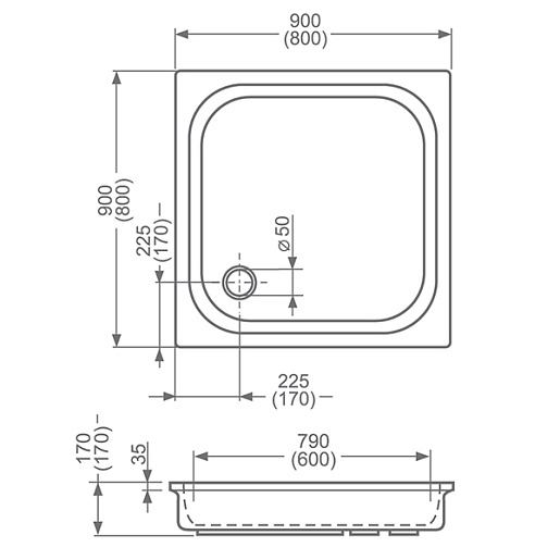 - габариты 900×900×170 мм