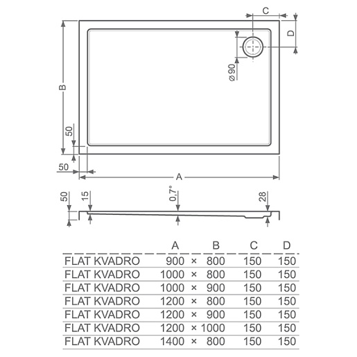 Roltechnik Душевой поддон "FLAT KVADRO 1400x800"
