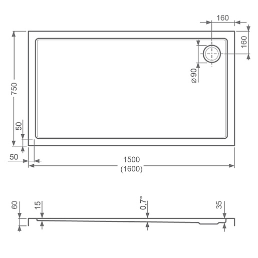 Roltechnik Душевой поддон "FLAT KVADRO 1600x750"