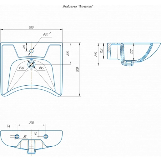 Умывальник Хирургический Атлантик с 1-отв. под смеситель.