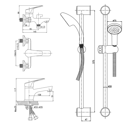 Rossinka Набор смесителей "3 в 1" SET35-83 для ванны, душа и раковины