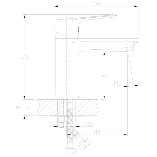 Высота излива, мм: