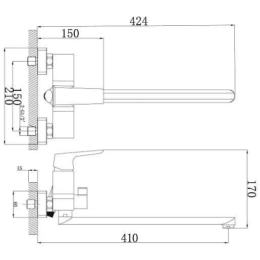 Длина излива, мм: