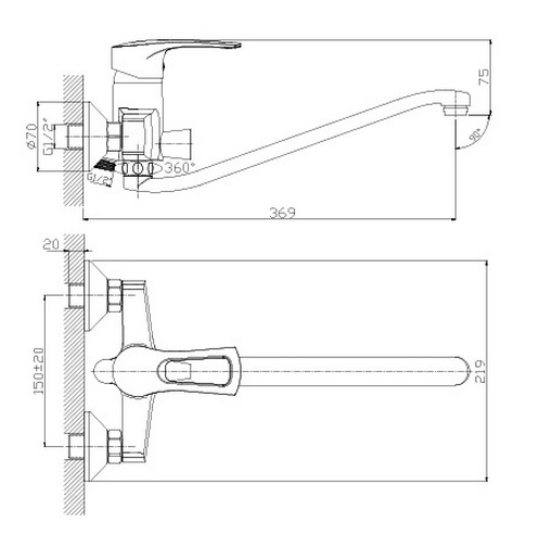 - S-образный поворотный излив 369 мм