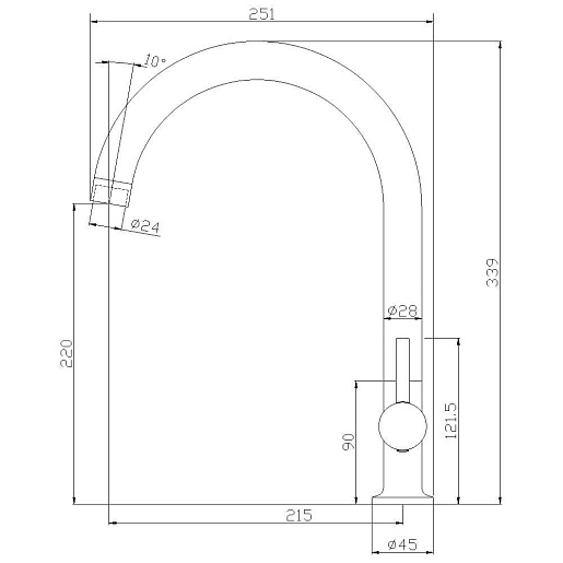 Высота излива, мм: