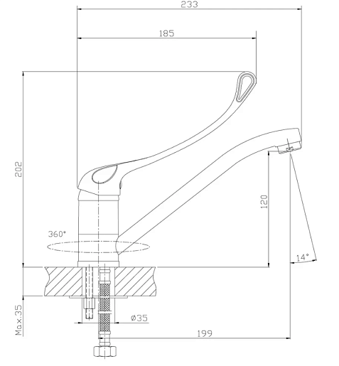- Оснащение: крепления, аэратор, гибкая подводка, керамический картридж 35 мм