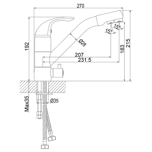 Высота излива, мм:
