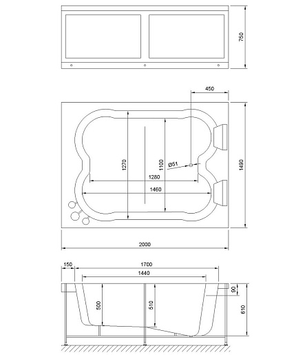 - слив-перелив, подголовники и экраны приобретаются отдельно