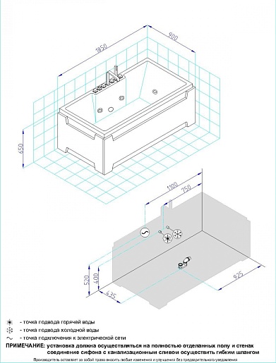 Комплектация для гидромассажной ванны TRIUMPH DE LUXE 185х87х65: