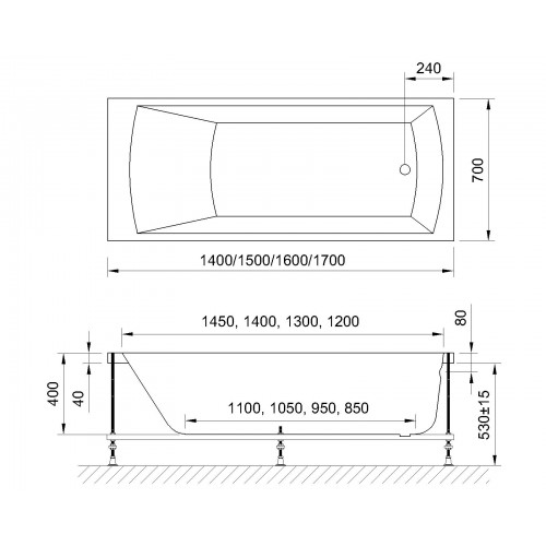 - слив-перелив, каркас, ножки, подголовник, экраны приобретаются отдельно.