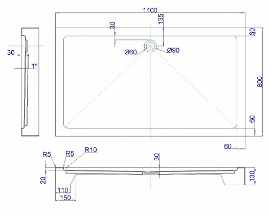 Royal Bath Душевой поддон RB 8140HP 800x1400x130
