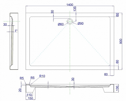 - Размер ШхГхВ: 1400х900х130 мм.