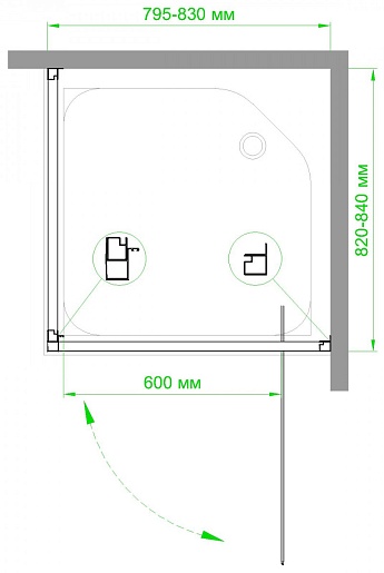 - Ширина входа: 60 см.