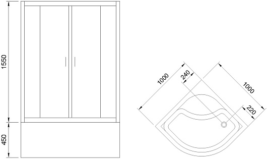 Комплектация: душевой уголок, поддон.