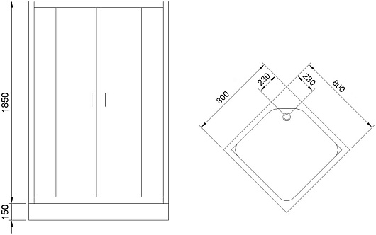 Комплектация: душевой уголок, поддон.