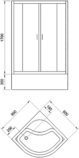 Комплектация: душевой уголок, поддон.