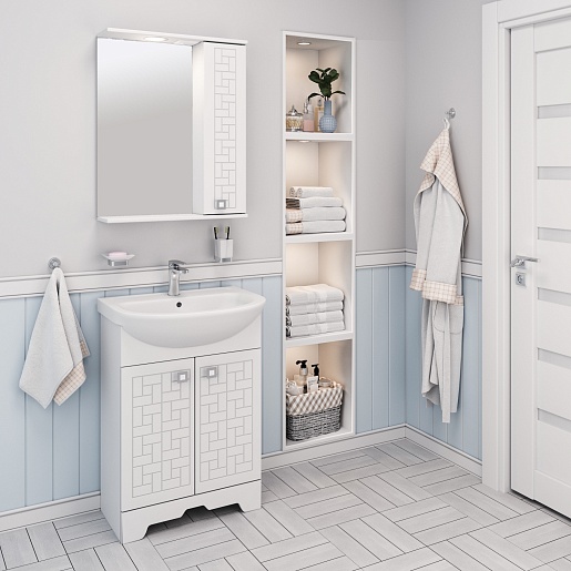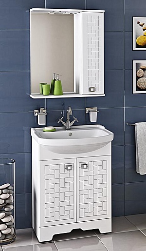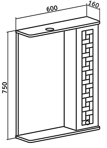 - Зеркало с козырьком и нижней полкой, закрытое отделение сбоку (справа).