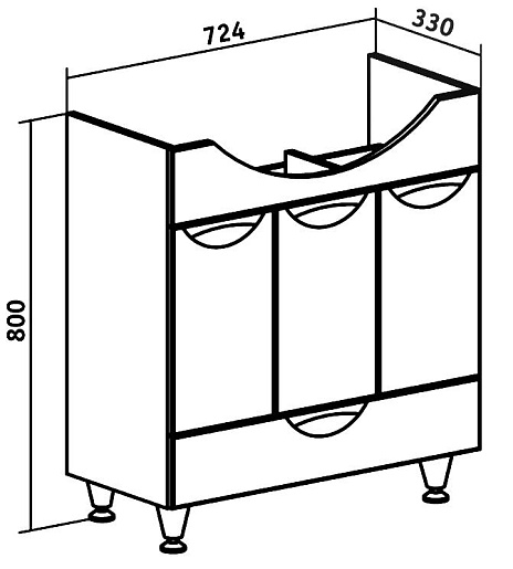 Описание: Три дверцы, петли со встроенным доводчиком. Один ящик на шариковых направляющих полного выдвижения. Две хромированные ножки спереди, две пластиковые ножки сзади.
