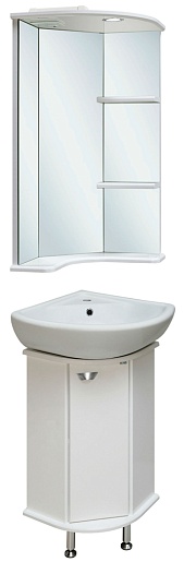 - Зеркало Runo Браво 40 угловое: встроенный светильник - 1 шт., розетка - 1 шт., выключатель - 1 шт., полка - 3 шт.