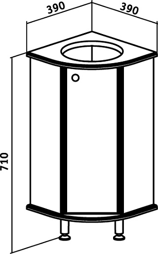 - Тумба с раковиной Runo Браво 40 угловая: раковина, распашная дверца - 1 шт., ручка - 1 шт.