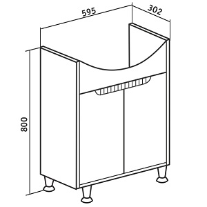 Описание: Тумба под умывальник на ножках с двумя распашными дверцами и одной внутренней полкой.