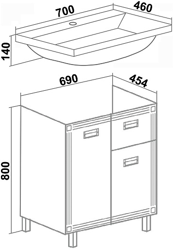 Тумба с раковиной Runo Карат 70 - арт. УТ000004229 / УТ000004187 (4620750028312 / 4620750027957).