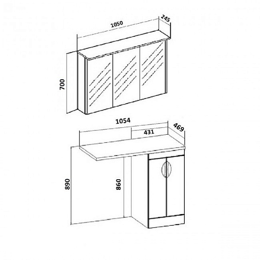 - Зеркало Лира 105: Зеркальный шкаф c тремя распашными зеркальными фасадами. Комплектуется светодиодной подсветкой, встроенной во врезной алюминиевый профиль, и розеткой с выключателем (внутри шкафа). Петли со встроенным доводчиком. Внутри каждого отделения шкафа по 2 встроенные полки.