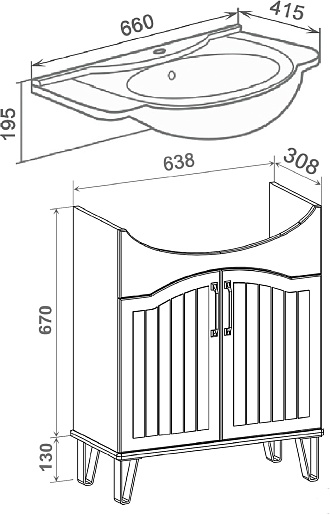 В комплекте: тумба, раковина, зеркальный шкаф, ножка (4 шт.).