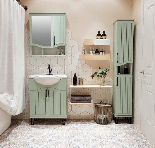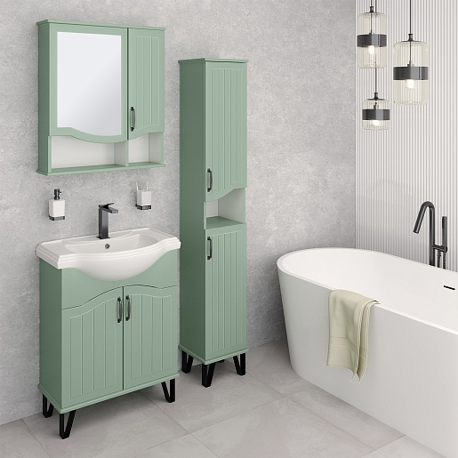 В комплекте: тумба, раковина, зеркальный шкаф, ножка (4 шт.).