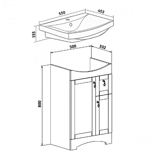 Тумба для умывальника Мерида 55